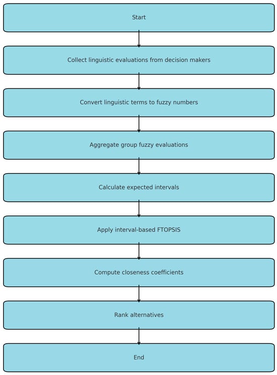 The use of interval arithmetic in fuzzy decision-making allows uncertain evaluations to be processed without collapsing them into crisp values too early. This helps preserve the full semantic range of expert assessments, thereby producing more reliable and interpretable results. Sevastjanov and Dymova [] demonstrated that interval-based modeling provides greater robustness in group decision-making, while Yang et al. [] recently emphasized its advantages in handling inconsistency and preference variability in large-scale fuzzy MCDM problems.