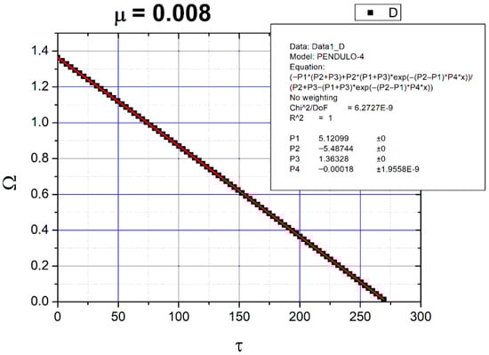 In the first case, the pendulum only contains the force of viscous friction and two different friction coefficients, λ = 0.008 in Figure 10 and λ = 0.08 in Figure 11.