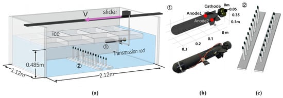 Submarine concealment and detection technologies in polar ice-covered environments represent a critical frontier in contemporary naval military research. The corrosion-related static electric field (CRSE), as a key signal source within a submarine’s underwater physical fields, directly influences the survivability and operational effectiveness of a vessel through its distribution characteristics. This study establishes a multiphysics coupling model of submarine impressed current cathodic protection (ICCP) systems, integrating COMSOL simulations with laboratory experiments to elucidate the effects of polar ice layers on a submarine CRSE. These findings offer essential theoretical support for advancing submarine stealth and antisubmarine detection technologies in polar regions.
