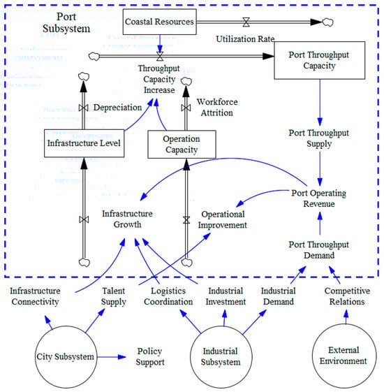 System dynamics diagram of the port subsystem.