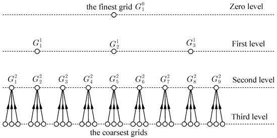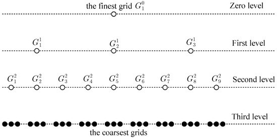 In other words, the optimal value can be found on one or several grids of the same level l, and the obtained value can be taken for all grids of the given level l. As a result, the amount of extra work on this level is negligible. This assumption is usually the most general one, and thus the results may be the strongest that can be obtained. The coarse level solution is a sufficiently accurate approximation to the fine level solution, and it used a priori information for determining the regularization parameter. On the finest grid (), the optimal value is computed by extrapolating the optimal values obtained at the other levels .