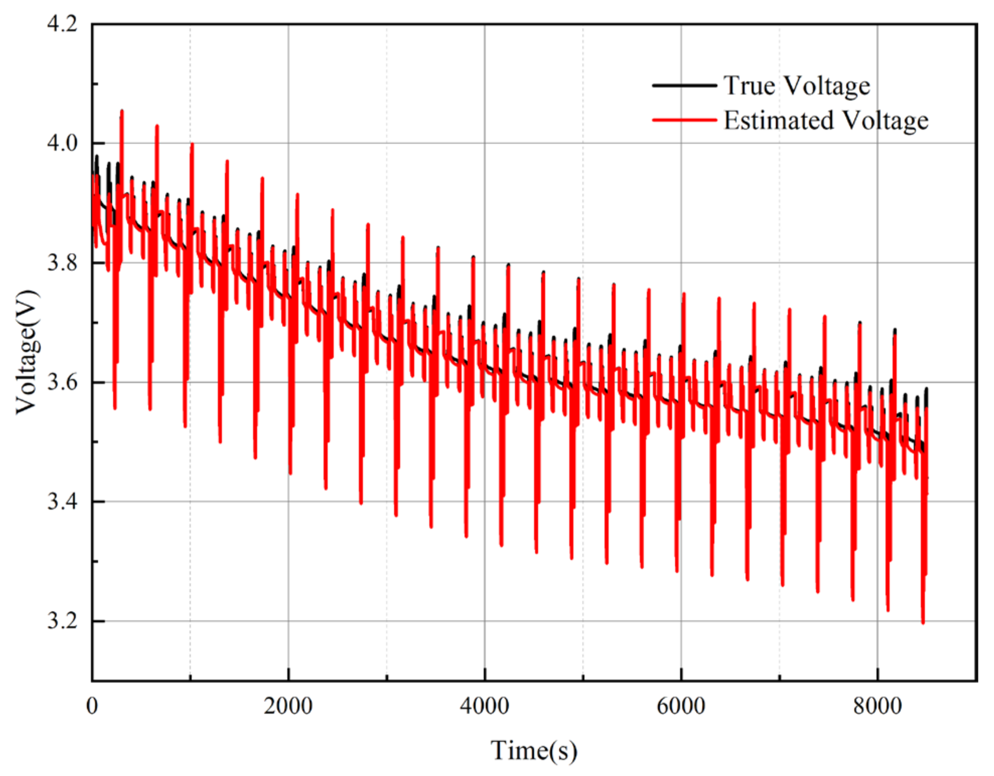 After completing the parameter identification, this paper uses the Dynamic Stress Test (DST) condition experimental data to conduct a simulation. A comparison between the actual measured voltage values and the experimentally simulated voltage values is obtained. The results are shown in