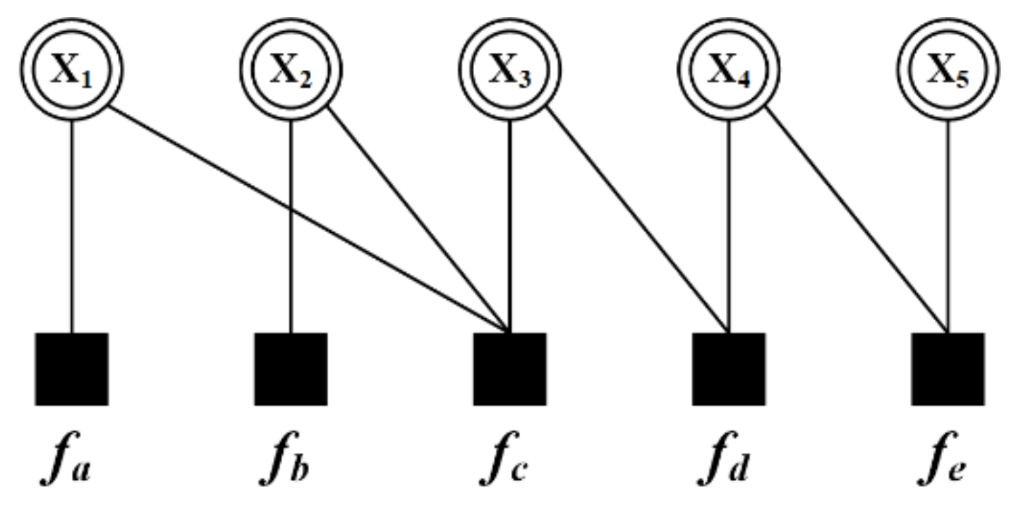 In the formula, represents all variables adjacent to the current node. denotes the set of neighboring factor nodes of the variable node , and denotes the set of neighboring variable nodes of the factor node .
