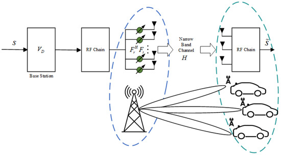 This paper investigates a narrowband multiple-input multiple-output (MIMO) millimeter-wave downlink system using a simulated precoding architecture in the Internet of Vehicles system, as shown in Figure 1. And the core parameters used in this paper are shown in Table 1.