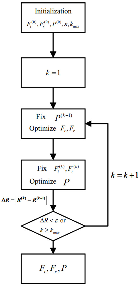 Due to the strong coupling between the variable P and , direct joint optimization is challenging; therefore, an alternating optimization approach is employed, decomposing the original problem into two subproblems solved iteratively.