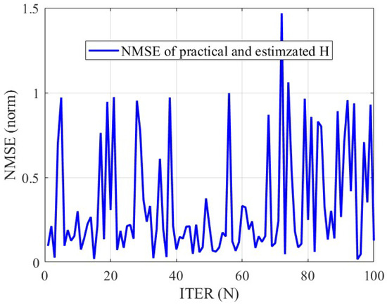As shown in the channel estimation error comparison graph (NMSE of practical and estimated H) in Figure 3, over 100 iterations, the normalized mean squared error (NMSE) of the proposed method consistently remains below 1.5, which is significantly lower than the traditional method exceeding 3.0. This demonstrates that by integrating imperfect CSI modeling with the distributed alternating optimization algorithm, the proposed scheme achieves enhanced robustness to channel estimation errors, thereby maintaining stable signal transmission quality under non-ideal channel conditions.
