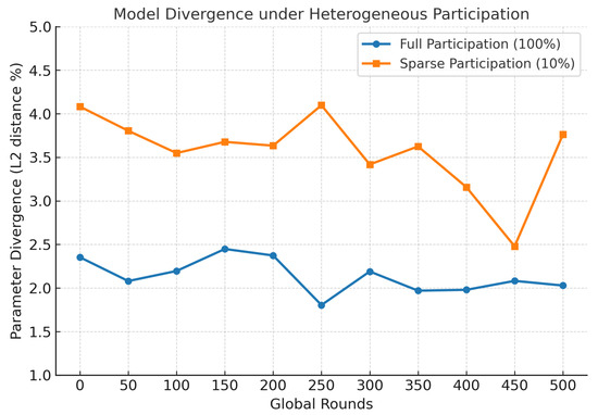 To prevent long-term pattern leakage, SAFE-MED incorporates randomized nonces and stochastic gradient perturbations so that encrypted gradients remain unpredictable across rounds, even when underlying updates are identical. This thwarts adaptive adversarial inference while preserving stable mappings. Beyond adversarial threats, SAFE-MED also addresses divergence from heterogeneous participation by applying trust-weighted aggregation and fog-level clustering, thereby limiting the impact of biased or anomalous clients on the global model.