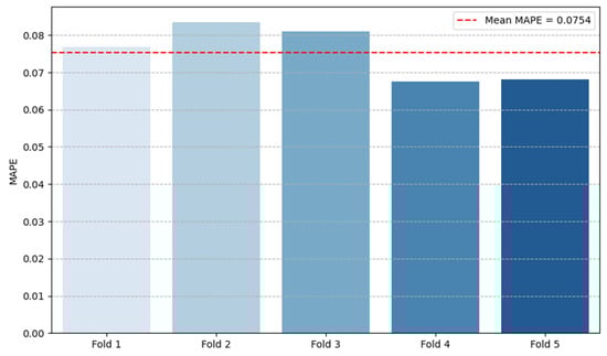 In addition to the MAPE, we also report the symmetric mean absolute percentage error (sMAPE), which modifies the denominator to be the mean of the actual and forecasted values. This formulation symmetrically penalizes both over- and under-predictions and ensures that the error metric is bounded between 0% and 200%. As Hyndman and Koehler (2006) emphasize, “sMAPE treats positive and negative forecast errors equally, thereby providing a more balanced and interpretable measure of forecast accuracy” []. Formally, the sMAPE is defined as