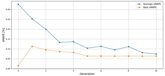 Let denote the hyperparameter vector of the predictive model and the feature subset selected in Section 2.7. The step-by-step procedure of the evolutionary hyperparameter optimization is summarized in Algorithm 2.