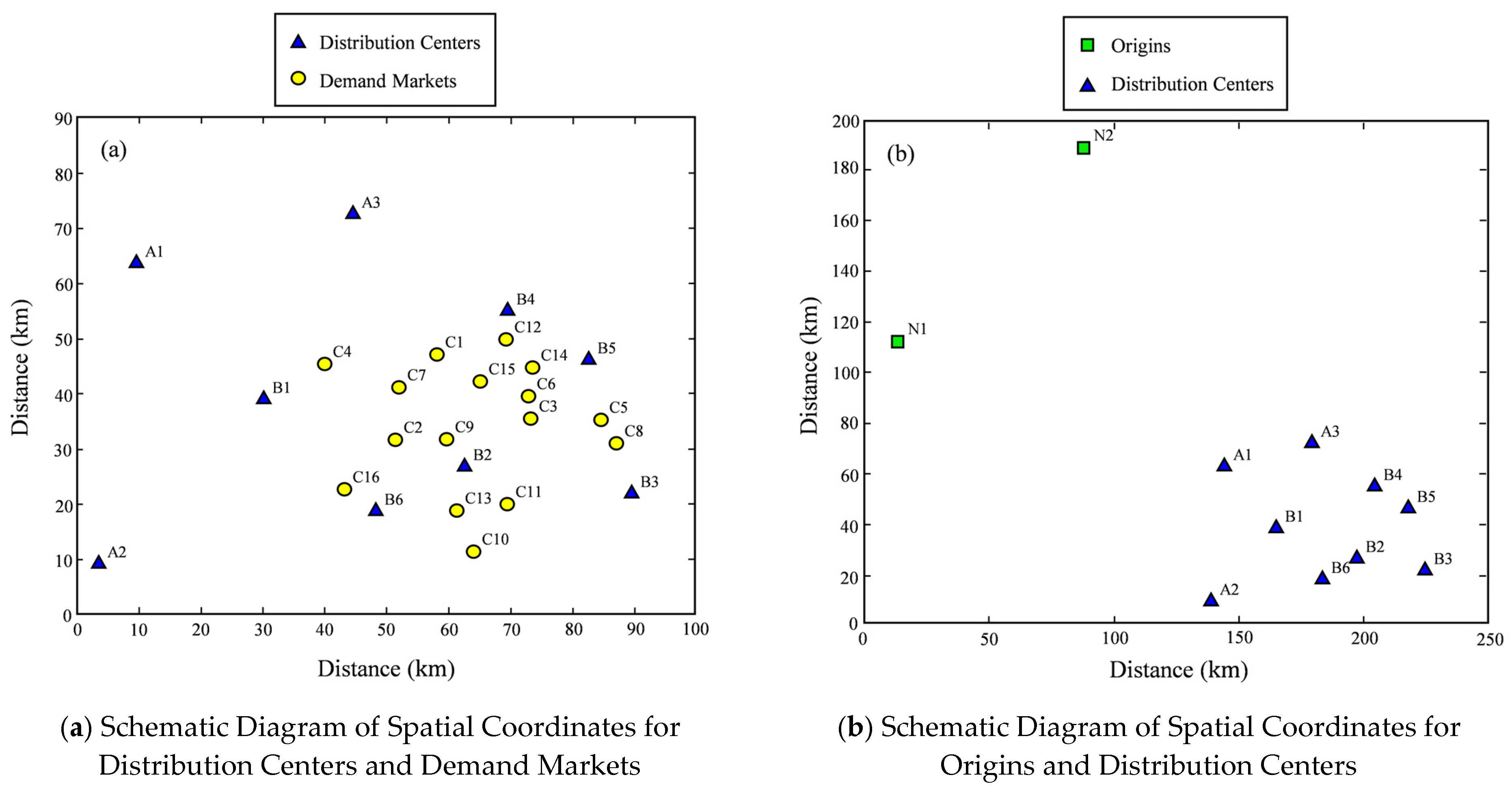 - Promote interdisciplinary methodology integration by combining the current location–allocation framework with technologies such as machine learning and blockchain, extending its application to the scheduling of various perishable goods in humanitarian logistics. For example, IoT-based devices could enable dynamic monitoring of material status, while smart contracts could enhance the transparency and credibility of emergency allocation processes.