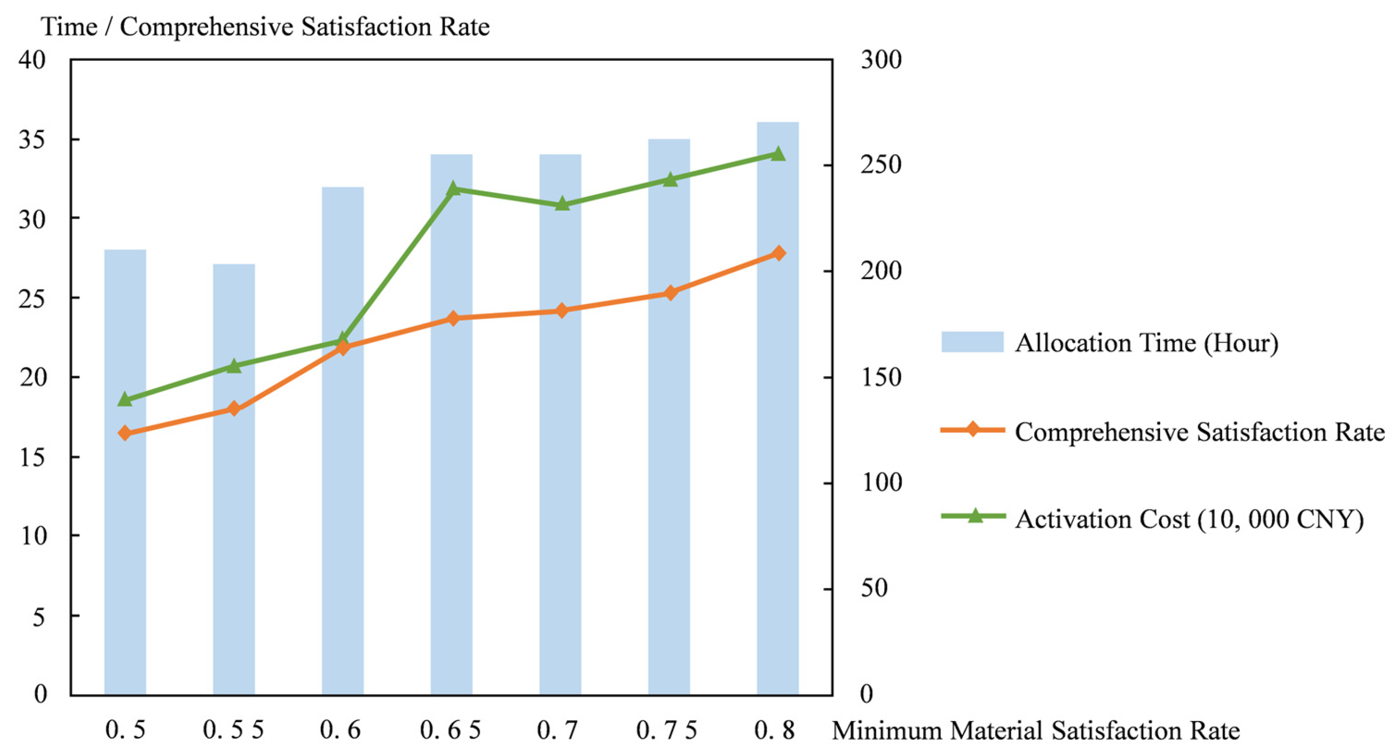 6.3.1. Sensitivity Analysis of Minimum Material Satisfaction Rate