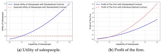 Conversely, for salespeople with stronger capabilities, the optimal effort level is higher than , and their expected income and utility exceed expectations.