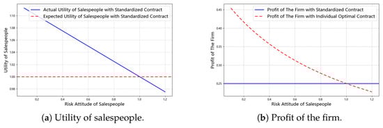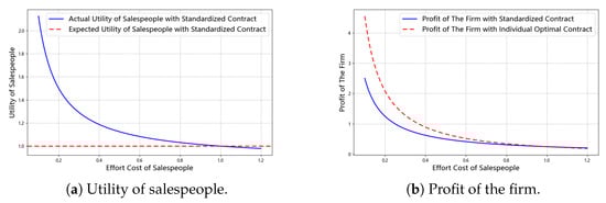 However, in practice, firms often face a range of operational constraints in sales management. Influenced by factors such as managerial efficiency, administrative costs, and organizational fairness, it is typically infeasible for firms to engage in deep, individualized contracting with each salesperson or to obtain complete and accurate information about their characteristics. As a result, rather than tailoring contracts for each individual, firms tend to adopt standardized incentive contracts for the broader range of salespeople [,]. These standardized contracts help to streamline management processes, reduce administrative costs, and promote a sense of fairness within the organization.
