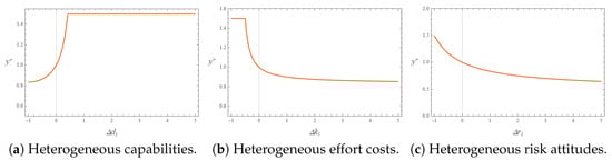 As indicated by Theorem 1, in scenario CK, where information is symmetric between the firm and the salesperson, the salesperson obtains only the minimum utility level determined by the opportunity cost and is unable to attain any excess utility. The salesperson’s expected income exceeds this baseline utility because it incorporates compensation for effort cost as well as a risk premium arising from market uncertainty.