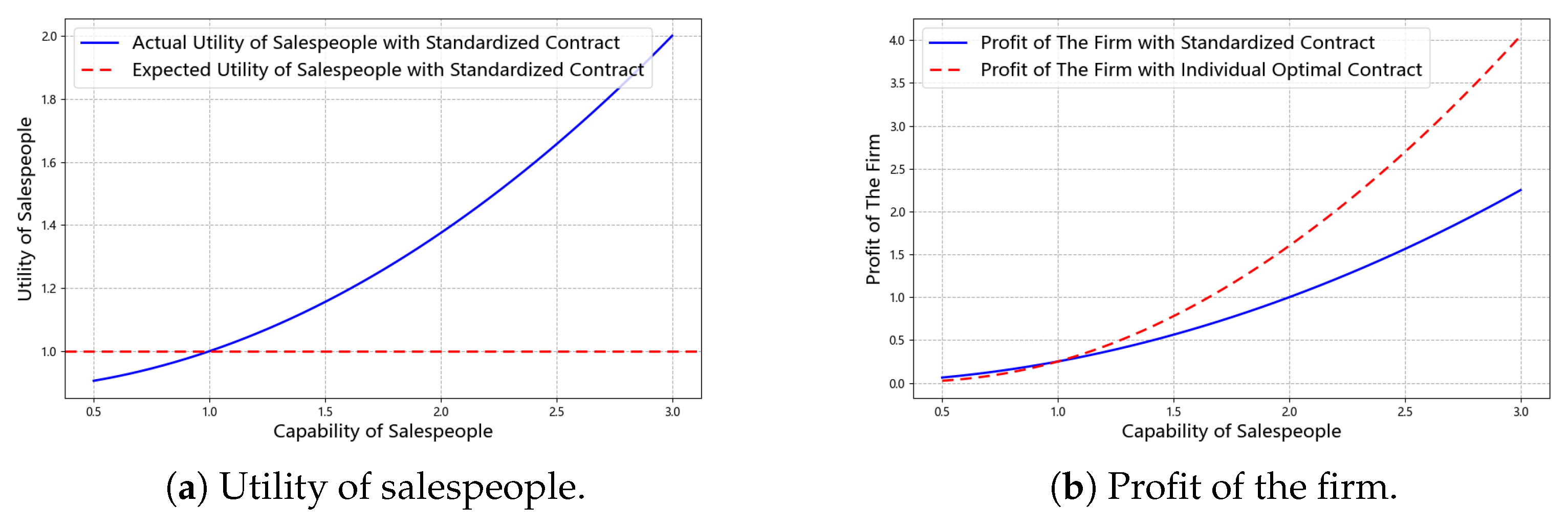 4.1.1. The Incentive Contract Effectiveness Evaluation with Heterogeneity in Salespeople’s Capabilities