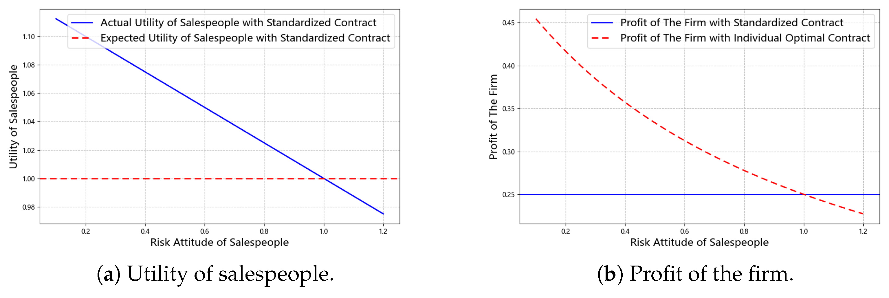 4.2.3. The Incentive Contract Effectiveness Evaluation with Heterogeneity in Salespeople’s Risk Attitudes
