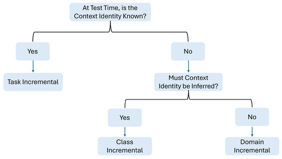 Incremental learning [1,2], also referred to as Continual Learning (CL), addresses the critical challenge of enabling Machine Learning (ML) models to adapt to new data and tasks sequentially without forgetting previously acquired knowledge (see Figure 1). This capability is essential for real-world applications where data distributions evolve over time or where it is impractical to retrain models from scratch with the entire dataset each time new information becomes available [3]. CL algorithms strive to build versatile AI agents that learn from a continuous sequence of tasks, contributing to the development of generally intelligent systems [4,5,6]. However, achieving stable and robust incremental learning is difficult because neural networks often suffer from catastrophic forgetting, whereby the acquisition of new information leads to a drastic decline in performance on old tasks [7]. To mitigate catastrophic forgetting, various strategies have been developed, which can be broadly categorized into three main scenarios—task-incremental learning, domain-incremental learning, and class-incremental learning—as shown in Figure 2. CL is an ML approach in which models are built to continuously learn from a stream of data, incorporating new knowledge while preserving and leveraging previously learned information [8], as illustrated in Figure 1 (1). Excessive plasticity can impair the retention of prior knowledge, whereas too much stability can obstruct the acquisition of new information. Instead of simply balancing these two aspects, a robust CL strategy should also promote strong generalization to effectively manage variations within and between tasks, as shown in Figure 1 (2). In recent years, a wide range of CL methods have emerged to tackle various ML challenges. These approaches can generally be grouped into five main categories, as depicted in Figure 1 (3). Importantly, many of these methods overlap; for example, both regularization and replay techniques affect gradient directions during training. These methods can also work synergistically, such as by improving replay efficiency through distillation of knowledge from earlier models. When applied to real-world problems, CL faces additional challenges that fall into two broad areas—scenario complexity and task-specific requirements—as illustrated in Figure 1 (4).