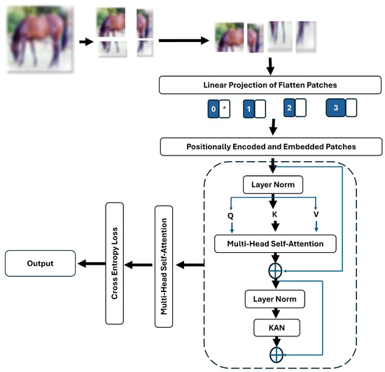 The combination of KANs and ViTs creates a synergistic effect; for instance, while ViT’s self-attention mechanism excels at modeling global dependencies between image patches, KANs enhance the non-linear transformations applied to these dependencies, enriching the overall feature representation. KAN’s modular design integrates seamlessly into the sequential structure of ViTs, ensuring adaptability to various datasets and tasks. Moreover, KAN’s capacity to isolate learned knowledge makes the hybrid model more resistant to catastrophic forgetting when compared to traditional MLPs.
