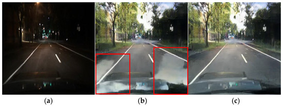 Thus, cycle-consistent GAN (CycleGAN), which employs unpaired datasets, has been proposed to address this problem [4]. Due to its advantages, CycleGAN has been widely used in diverse fields [5], including medical image enhancement, photograph style transfer, and nighttime image conversion. The vision system in autonomous driving plays a crucial role in recognizing road information to enhance driving safety. Recent studies have employed CycleGAN to detect road object information in nighttime driving settings [6]. However, the visibility of essential visual elements (e.g., traffic lights and road noise), which are critical in nighttime driving, remains challenging to improve.