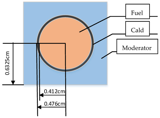 In the process of generating subgroup parameters, to improve the fitting accuracy, more subgroups should be selected for energy groups where the resonance cross-section changes drastically; for energy groups with insignificant resonance phenomena, where the cross-section varies slowly with energy, fewer subgroups are sufficient to meet the calculation requirements. Taking UO2 fuel as an example, its geometric dimensions and fuel composition are shown in Figure 4 and Table 2 [45]. The resonance phenomenon in the 19th energy group of UO2 fuel is relatively significant, while that in the 22nd resonance group is weak. Taking these two groups as examples, the generation process and results of subgroup parameters are analyzed.
