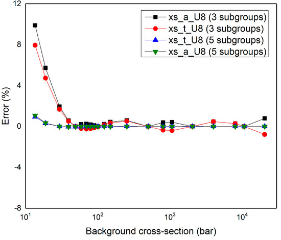 - Park, H.; Joo, H.G. Effective Subgroup Method Employing Macro Level Grid Optimization for LWR Applications. Ann. Nucl. Energy 2019, 129, 461–471. [Google Scholar] [CrossRef]