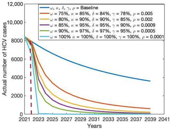 Impact of combination intervention policy on the actual number of HCV cases.