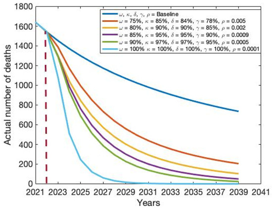 Impact of combination intervention policy on the actual number of HCV-related deaths.