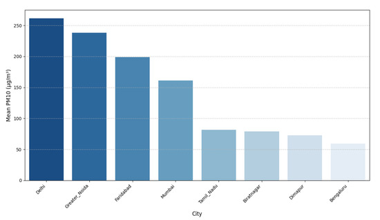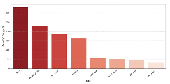 Figure 3 and Figure 4 rank the cities by their mean of and concentrations, highlighting the wide variance in pollution levels across the study region.