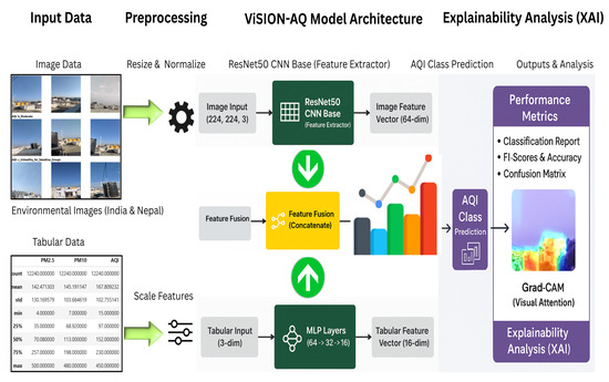 This study proposes and evaluates Vision-AQ, an explainable multi-modal DL framework for air quality classification. Methodology is structured into four key phases: (1) data acquisition and pre-processing, (2) the Vision-AQ model architecture, (3) a two-stage training and fine-tuning strategy, and (4) a framework for performance evaluation and model interpretability.