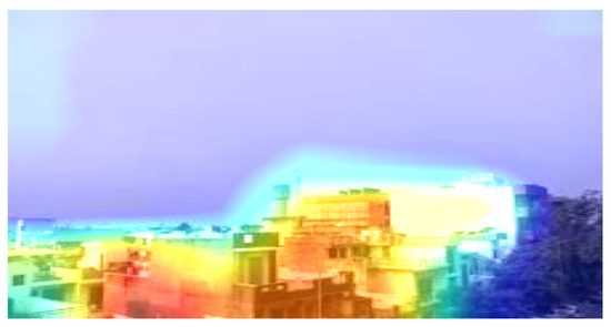 Figure 9 presents a Grad-CAM heatmap for an image correctly classified as Very Unhealthy. The activation map highlights yellow atmospheric haze and the obscured visibility of buildings in the background, with red regions indicating dense areas. This provides strong evidence that the CNN has learned to associate visual cues of aerosol scattering and reduced clarity with poor air quality, confirming that the model is focusing on relevant features for classification.