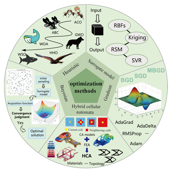 - Aye, C.M.; Pholdee, N.; Yildiz, A.R.; Bureerat, S.; Sait, S.M. Multi-surrogate-assisted metaheuristics for crashworthiness optimisation. Int. J. Veh. Des. 2019, 80, 223–240. [Google Scholar] [CrossRef]