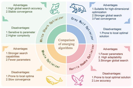 - Braik, M.; Hammouri, A.; Atwan, J.; Al-Betar, M.A.; Awadallah, M.A. White Shark Optimizer: A novel bio-inspired meta-heuristic algorithm for global optimization problems. Knowl.-Based Syst. 2022, 243, 108457. [Google Scholar] [CrossRef]