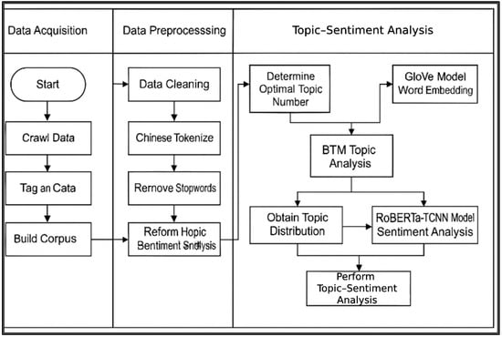 In summary, both domestic and international scholars have conducted extensive research on the evolution of online public opinion using topic mining and sentiment analysis. While these studies provide a strong foundation, few have deeply integrated topic and sentiment analysis from a multi-angle perspective to explore the true dynamics of online discourse. Thus, this paper leverages deep learning algorithms to optimize traditional models and constructs a topic–sentiment analysis framework that is specifically tailored to the characteristics of online discourse during the emergency response phase of the COVID-19 pandemic. This framework aims to uncover latent emotional and thematic information, offering practical insights for targeted public opinion guidance and governance.