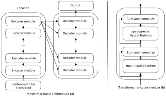 To address the limitations of traditional models in capturing deep semantic context and long-range dependencies within text, this study leverages the Transformer architecture. Originally proposed by Vaswani et al. [], the Transformer model utilizes a self-attention mechanism to compute representations of each word in relation to all other words in a sentence, thereby effectively capturing global contextual information. This capability overcomes the constraints of earlier models like RNNs and LSTMs, which often struggle with long-distance dependencies and computational inefficiency.