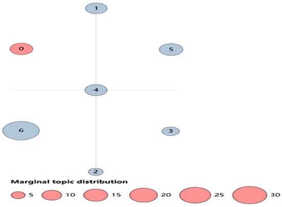 Finally, topic visualization is employed to assess potential overfitting of the model. As shown in Figure 6, there is no overlap among the identified topics, indicating that the topic model has not suffered from overfitting and that the semantic boundaries between topics are clear. Therefore, the optimal number of topics for the topic model in this study is determined to be seven (7).