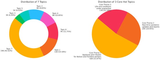 Based on the interpretation of topic keywords and the distribution of Weibo posts under different topics, it can be observed that two months after the outbreak of the pandemic, online public opinion had shifted to focus more on the lives of residents under quarantine, including their work and the process of returning to work. Topic 7 accounted for as much as 42.6%, and the Core Theme 3—life and conditions under quarantine—emerged as the most discussed topic among all core themes. This shows that as the pandemic progressed, public attention had gradually shifted from the outbreak itself to the way of life it brought about.