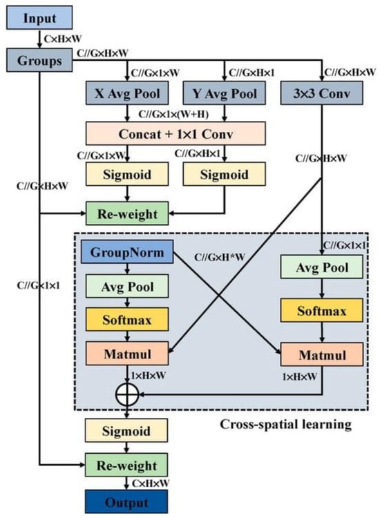 The Efficient Multi-Scale Attention (EMSA) mechanism [] is an innovative attention module that has recently garnered significant attention in the literature. Its core principle is to reduce computational complexity while maintaining crucial information across each channel.
