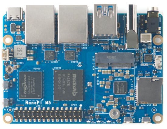 The NanoPi M5 edge computing device with RK3576 chip.