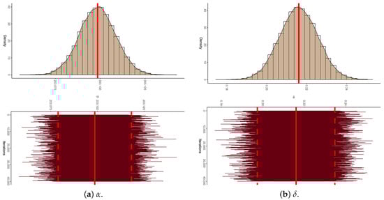 Consequently, we utilize the MCMC technique to approximate the Bayes estimators and and to construct the associated BCI estimators. To generate such samples, it is first necessary to derive the full-conditional posterior PDFs of and , as follows: