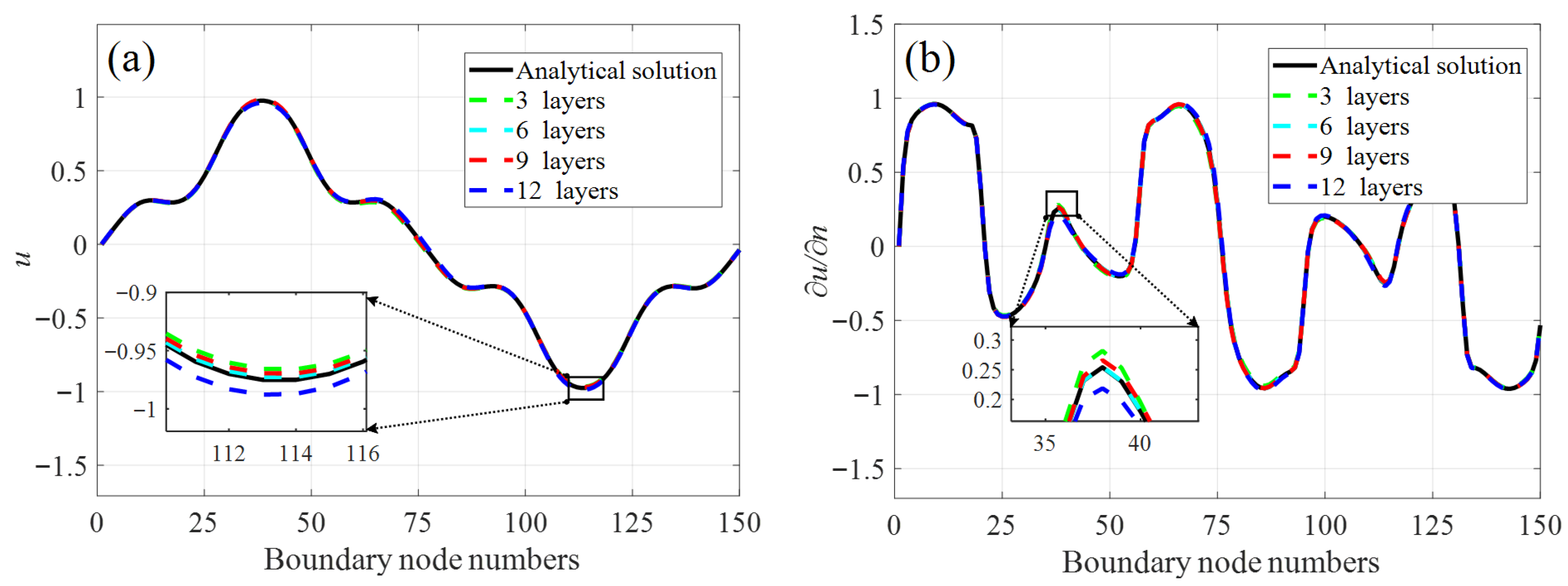 Figure 4 illustrates the BKNN framework. The BKNN architecture consists of four main components: a deep neural network, a BKM part, a loss function based on boundary conditions and backpropagation algorithms. The neural networks take the source points as input and output the corresponding source point coefficient vector. By training the neural networks, the weights and biases in the BKNN are updated simultaneously. The source point coefficient vector is acquired once the loss converges to a predefined threshold.