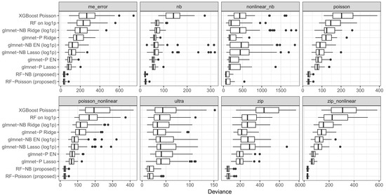 In conclusion, this study establishes that the proposed Random Forest frameworks represent a significant and practical advancement for high-dimensional count regression, directly addressing a critical gap in the methodological literature. Existing approaches force a trade-off: penalized regressions offer interpretability through sparsity but fail to capture the complex nonlinearities and interactions inherent in modern datasets, while standard machine learning ensembles offer predictive flexibility at the cost of ignoring the fundamental distributional characteristics of count data, such as overdispersion, leading to unstable and biologically uninterpretable results. Our work bridges this divide by harmonizing the predictive power of nonparametric ensembles with the model-specific rigor of parametric methods, thus responding directly to the call for methods that can handle complex dependencies while maintaining probabilistic coherence, as noted by [14]. The results confirm that these tailored algorithms provide an essential tool for researchers in fields like genomics and epidemiology, where the fundamental challenge of accurately modeling complex count data with thousands of correlated predictors, as described by Robinson and Smyth [2], necessitates a method that is both statistically robust and practically interpretable.