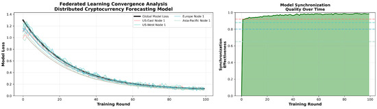 Model synchronization protocols ensure temporal consistency across distributed components while minimizing communication overhead. The synchronization frequency is dynamically adjusted based on market conditions and model divergence metrics, as shown in Equation (16).