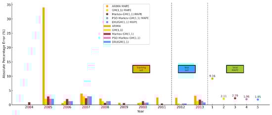 Rolling updates ensure that the model can adapt to the latest trends in a timely manner, while dynamic error correction utilizes residuals to correct prediction biases. DRUGM (1,1) combines rolling data updates with a dynamic error correction mechanism; it can not only reduce the impact of outdated information, but also iteratively adjust deviations when new data are available, thereby maintaining higher stability and accuracy in the event of sudden fluctuations or trend changes.