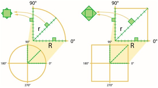 Just as Euclidean geometry in dimension two essentially derived from the circle as a basic figure, Lamé’s supercircles ( underlie the simplest definite Minkowski–Finsler geometries in which 4-fold anisotropies occur, when considered from a human point of view [20]. For each supercircle, the associated trigonometric functions can be defined, and a Pythagorean theorem applies to any supercircle based on these functions. In recent years, superellipses have been successfully used to model tree rings of conifers [21,22,23], plant leaves [24,25], and cross-sections of square bamboos [26,27], corroborating Lamé’s ideas.
