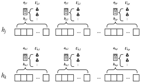 To enhance the convergence velocity of the algorithm, in the crossover process, we forgo the conventional random-crossover approach employed in genetic algorithms; instead, the chromosome code is segmented based on the chromosome code corresponding to each auxiliary edge server. The individuals and are decomposed into and , as depicted in Figure 2. For each corresponding pair of segments and , which correspond to auxiliary edge servers and , the segment exhibiting a lower total delay for the user sets and is selected as the chromosome code segment post-crossover. That is,