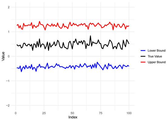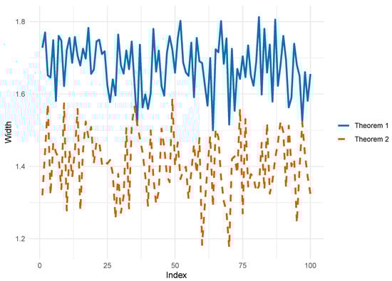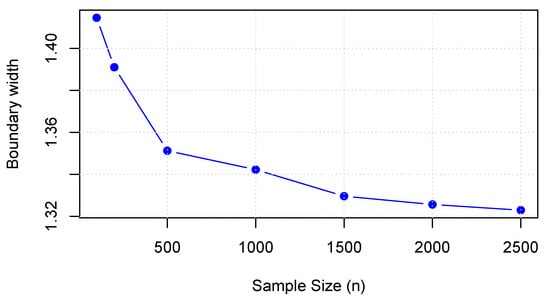 Figure 5 and Figure 6 illustrate the changes in bound width with increasing sample sizes under Theorems 1 and 2, respectively. The results indicate that as the sample size increases, the bound widths gradually shrink and stabilize, demonstrating that the bound estimates exhibit desirable large-sample properties under the corresponding assumptions. In particular, larger sample sizes lead to improved precision of the bound estimates.