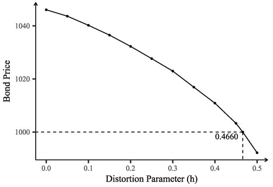 Repeat the above process for different values of the distortion parameter h to get the corresponding expected bond price. The relationship between different distortion parameters and bond prices is illustrated in Figure 5.