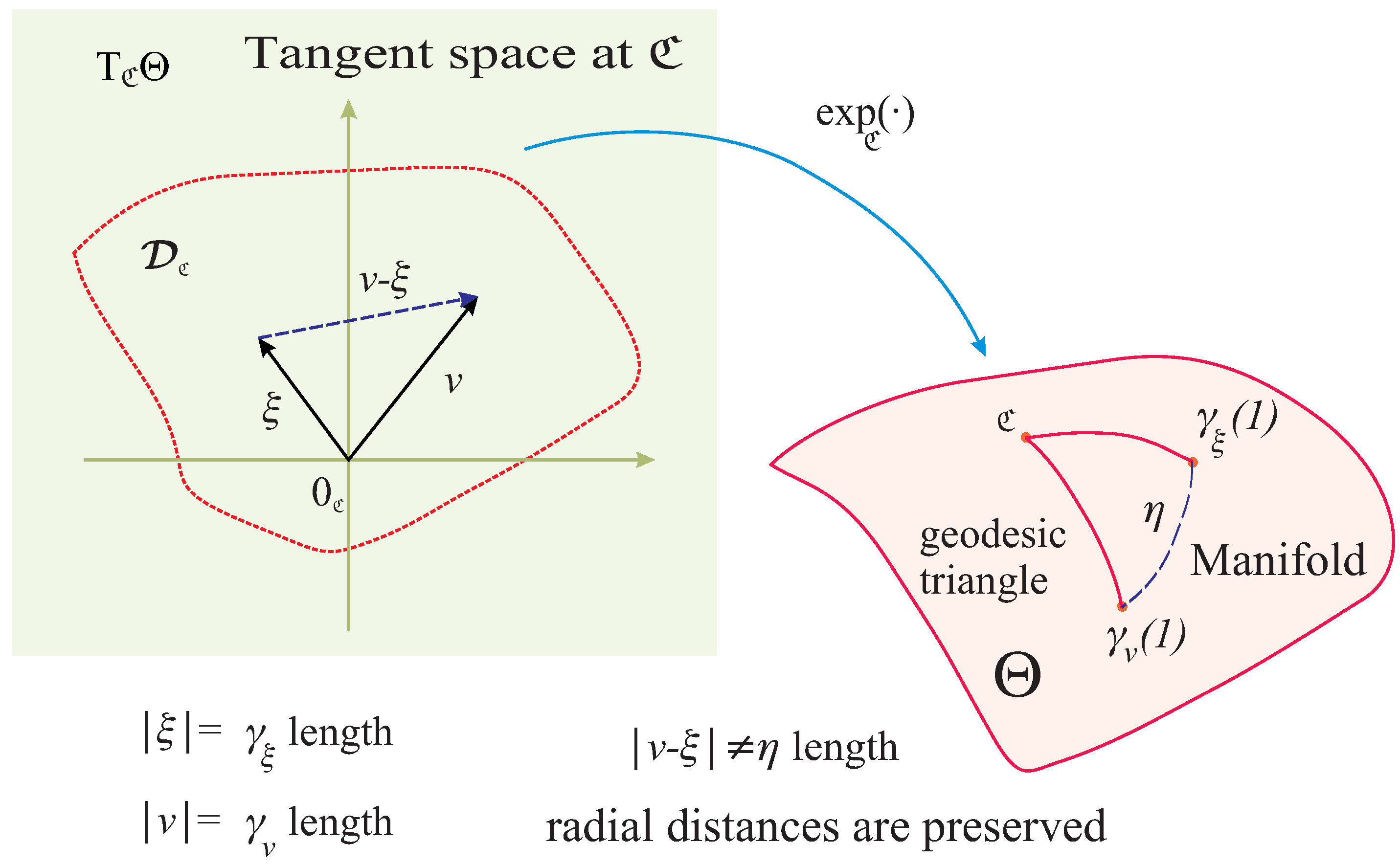 Then, the exponential map is given by , and it is well defined for all in an open star-shaped neighborhood of .