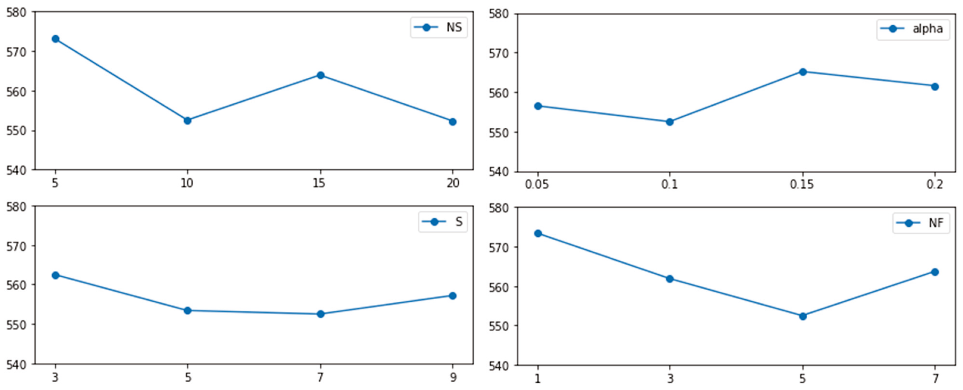 Figure 2 illustrates how different parameter values influence the average makespan. Based on the DOE results, the optimal configuration was identified as NS = 10, S = 7,