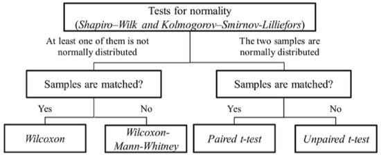 Finally, the obtained results were analyzed using descriptive statistics and compared using nonparametric tests according to the methodology from [9,13], as shown in Figure 1.